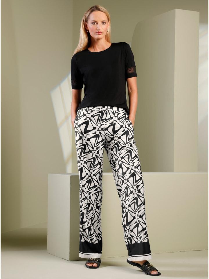 Рубашка из слегка мерцающей, струящейся вискозы Lenzing ECOVERO. С современными сетчатыми вставками на коротких рукавах. Прямой крой, круглый вырез горловины.