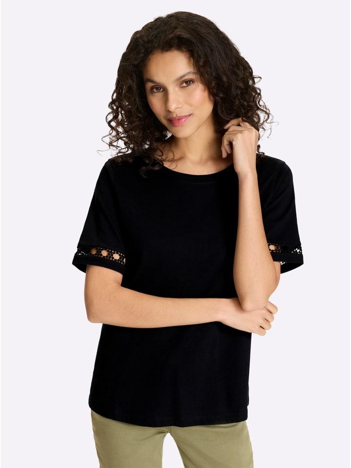 Женственная футболка с нежной отделкой крючком на коротких рукавах. Круглый вырез. Сертифицировано GOTS.