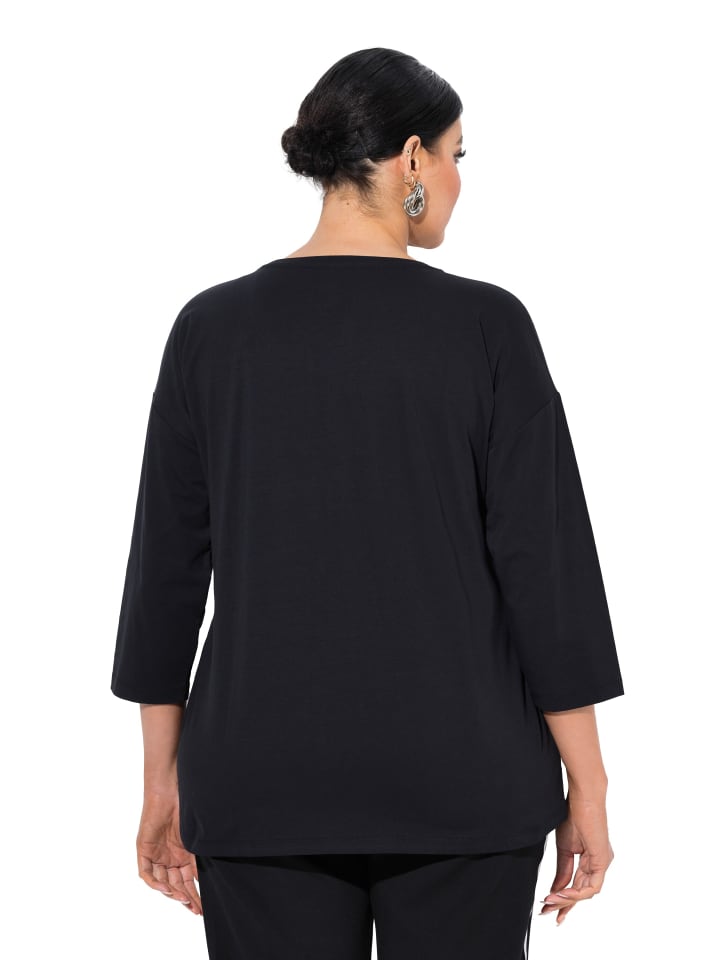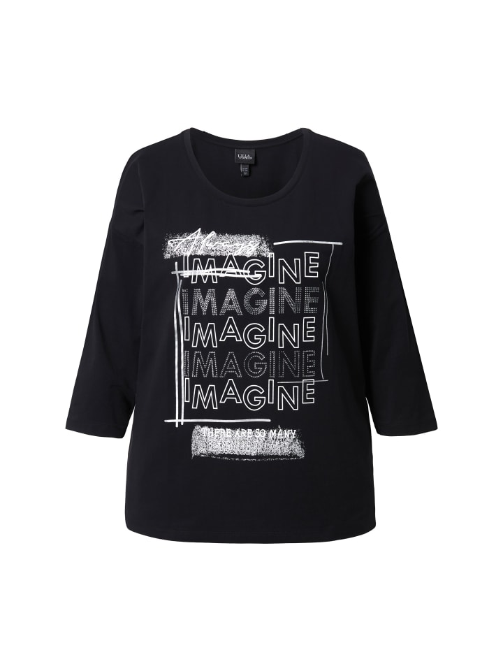 Футболка прямого кроя из мягкого трикотажа с принтом Imagine. Круглый вырез горловины. Рукава 3/4.