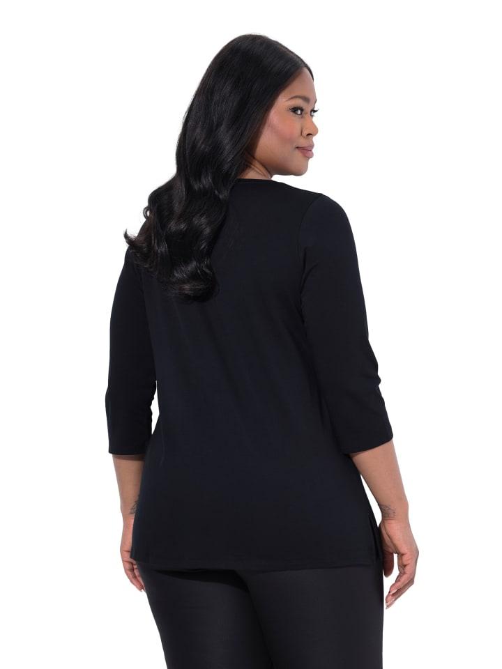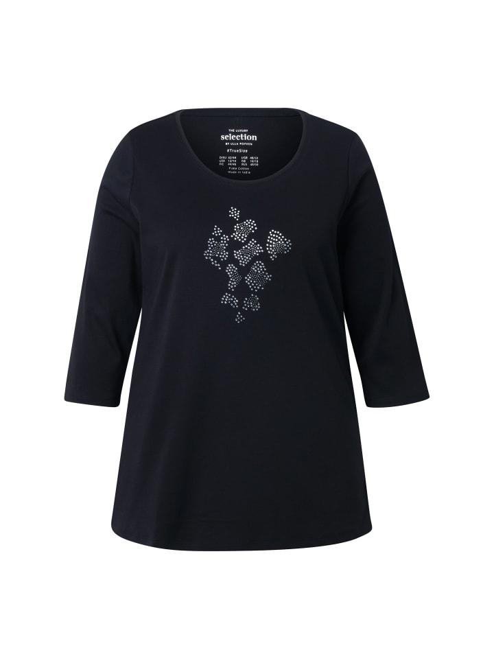 Футболка А-силуэта из высококачественного мягкого хлопкового трикотажа с блестящим леопардовым принтом из стразов. Круглый вырез, рукава 3/4. Боковые разрезы для мягкого драпирования и дополнительного комфорта.