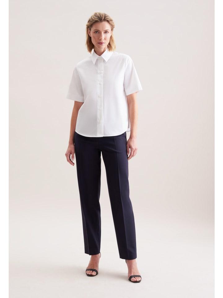 Дополнит ваш образ и станет незаменимой вещью в каждом гардеробе: эта блузка-рубашка от Seidensticker впечатляет своей женственной элегантностью. Саржевое переплетение, изготовленное из 100% хлопка, отличается исключительно высоким качеством, что делает ее удобной в носке и придает ей чудесную текстуру благодаря диагональному переплетению. Современный крой обеспечивает непринужденную, более свободную посадку, обеспечивая максимальный комфорт. Эта блузка-рубашка, настоящая приманка для глаз, представляет собой продуманное сочетание классической изысканности и современного дизайна. Эта блузка-рубашка с короткими рукавами идеально подходит для того, чтобы подчеркнуть стиль и элегантность в теплые дни. Отложной воротник дополнительно подчеркивает ее женственность и классический характер. Элегантные перламутровые пуговицы добавляют нотку сдержанной элегантности.