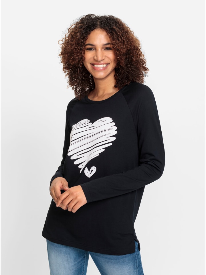 Вы просто влюбитесь в эту рубашку с эффектным сердечком спереди! Свободный крой, круглый вырез, длинные рукава реглан и разрез сбоку по низу.