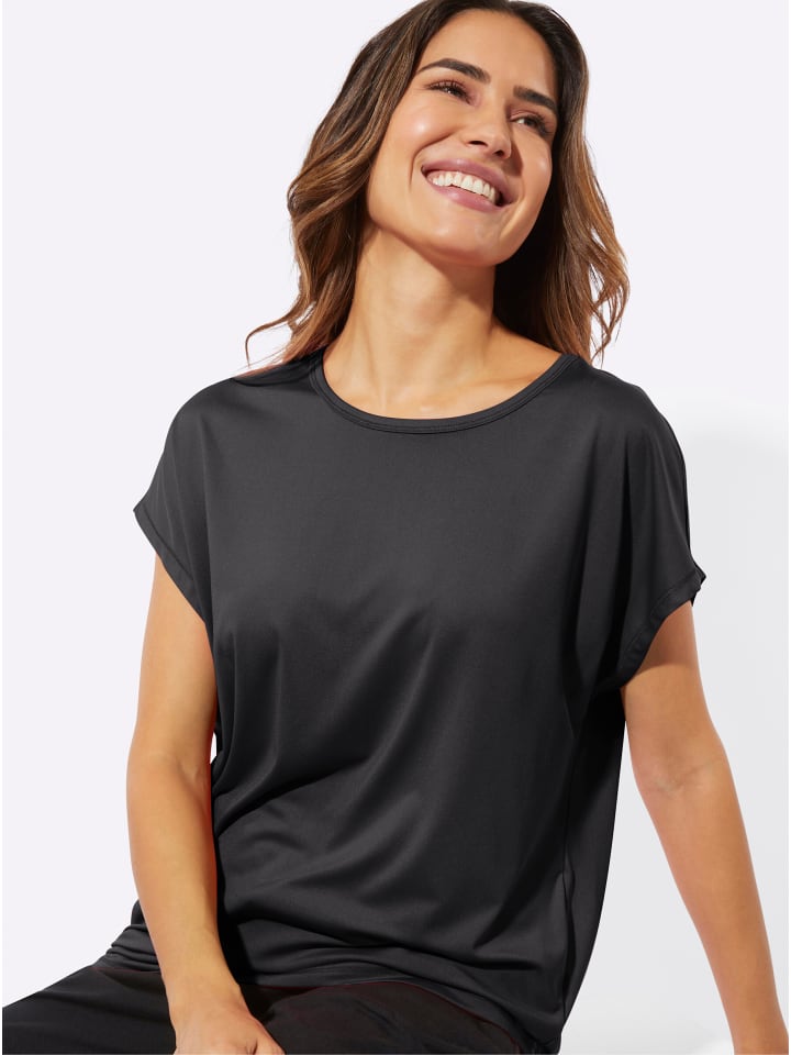Эту повседневную рубашку очень удобно носить благодаря дышащей ткани, даже если вы вспотели. Идеально подходит для тренировок! Круглый вырез горловины и непринужденно спущенные плечи.