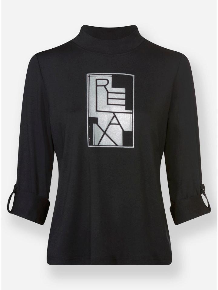 Эта рубашка с воротником-стойкой сияет серебристой надписью и декоративными стразами спереди. Длинные рукава можно небрежно закатать. Изготовлена из мягкой, струящейся ткани.