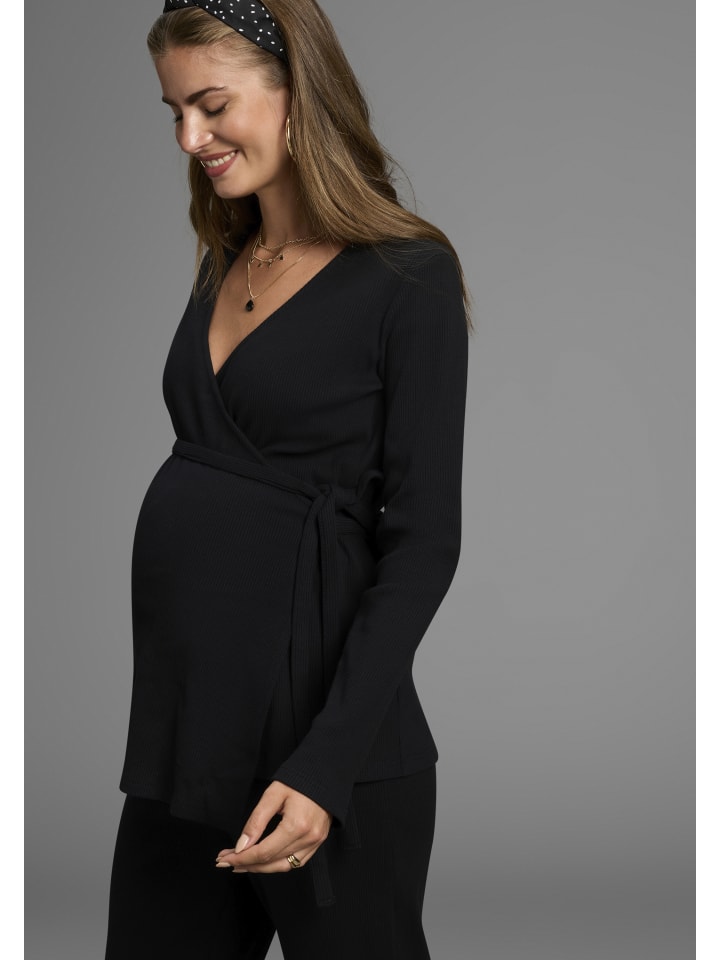 Универсальный топ для беременных от Nine Months. Классический крой, длинные рукава и завязка. Эластичный трикотаж обеспечивает мягкую и комфортную посадку.