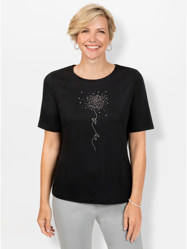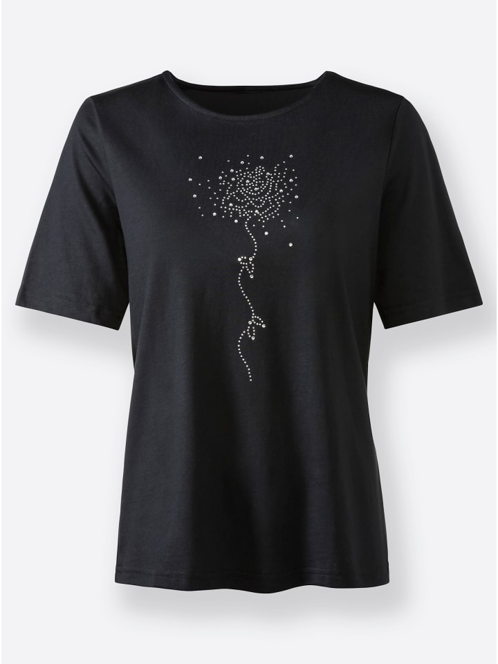 Эту рубашку из мягкого смесового материала украшает аккуратно расположенная отделка стразами. У нее слегка удлиненные короткие рукава, подчеркивающие фигуру. Покупая эту рубашку, вы поддерживаете инициативу «Хлопок, сделанный в Африке».