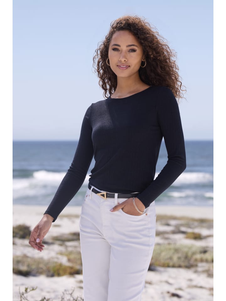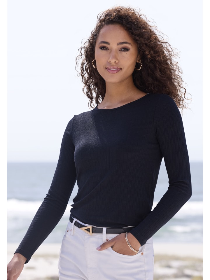 Простая рубашка с длинными рукавами от Vivance. Однотонная модель с модной ребристой текстурой и круглым вырезом. Свободный крой. Легко сочетается с другими тканями. Мягкая, струящаяся вискозная смесь.