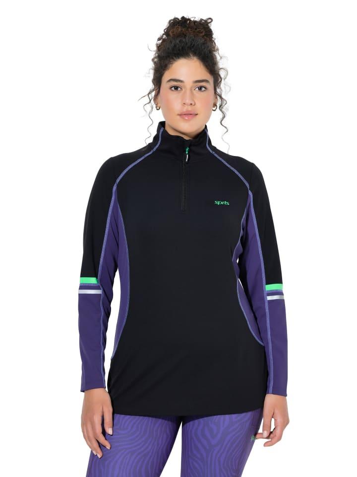 Функциональная рубашка облегающего кроя - идеально подходит в качестве базового слоя. Эластичный трикотаж интерлок, дышащий и быстро сохнет благодаря технологии QuickDry. Модные светоотражающие принты. Цветные боковые вставки и плоские декоративные швы. Воротник-стойка на молнии, длинные рукава.