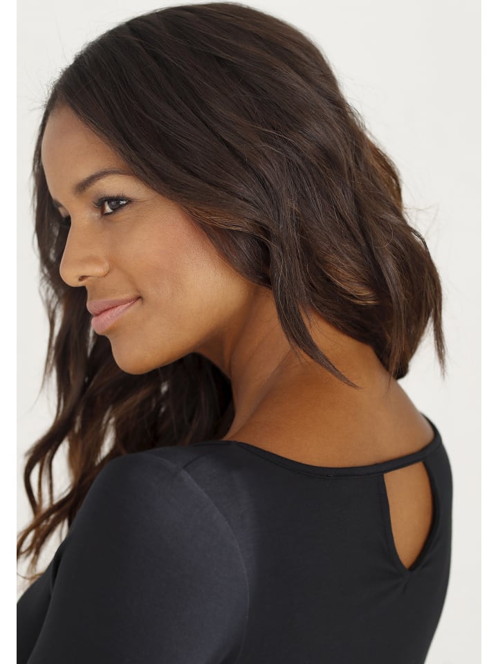 Рубашка с рукавами 3/4, черная с рисунком, черная LASCANA