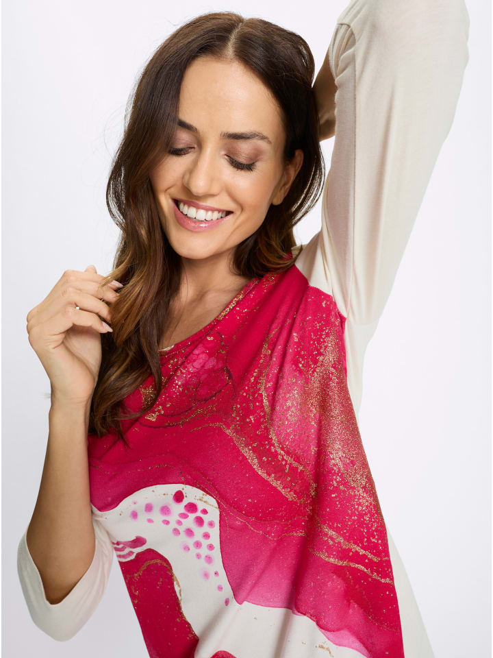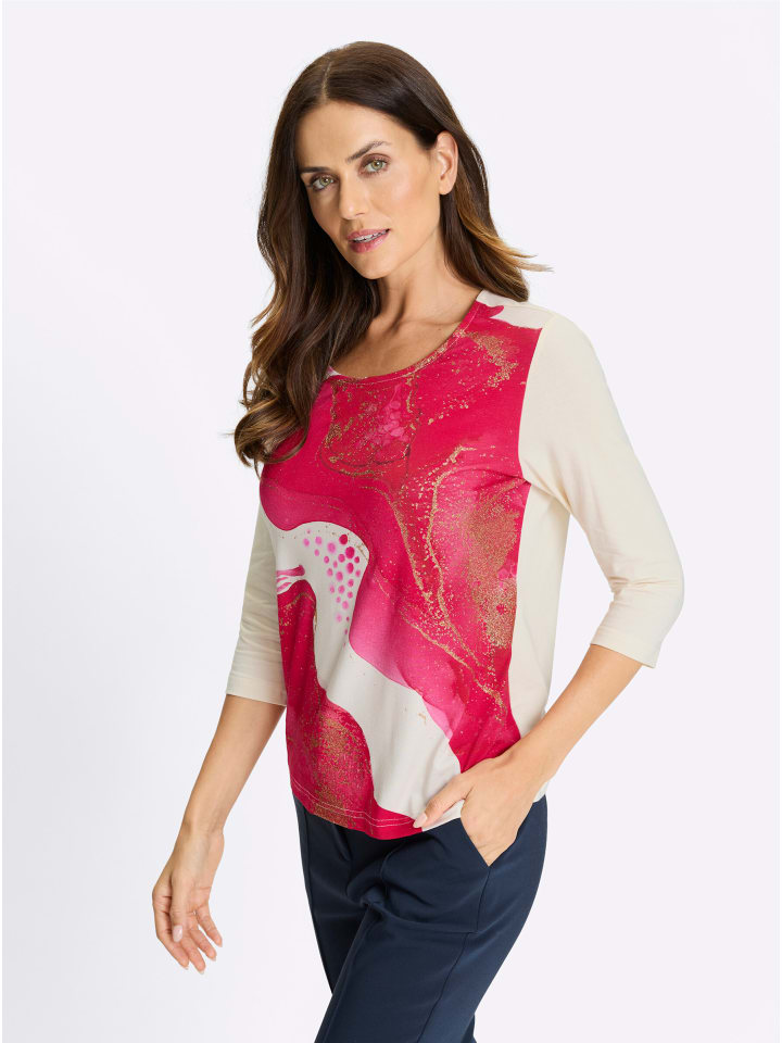 Рубашка экстравагантного дизайна с мерцающими золотыми акцентами. Круглый вырез. Рукава 3/4. Гладкая и мягкая, изготовлена из вискозы Lenzing ECOVERO.