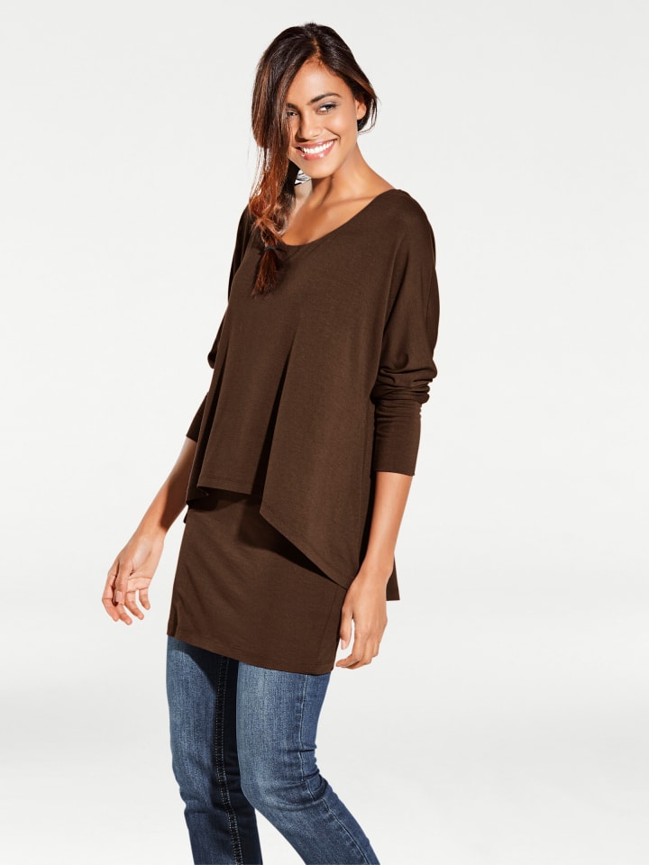 Рубашка с круглым вырезом шоколадного цвета Heine