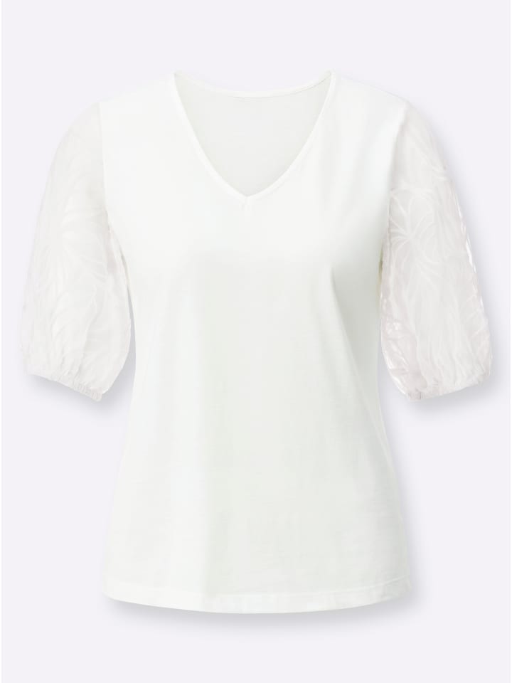Эта чудесно мягкая рубашка из смесовой ткани с модалом притягивает взгляды благодаря модным рукавам, которые добавят игривости любому образу. Они выполнены из тонкого, прозрачного кружева с эффектом выжигания и дополнены эластичными манжетами.