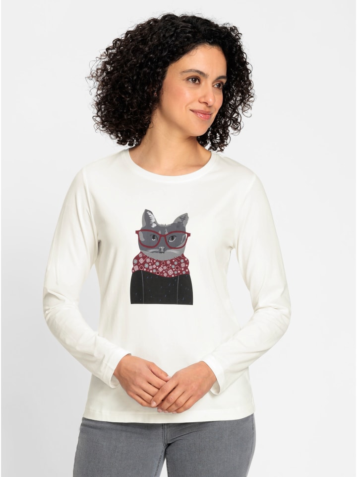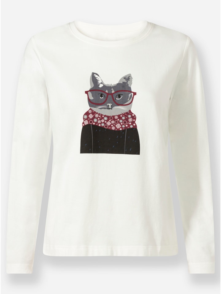 Удобная рубашка с забавным рисунком кота. Круглый вырез горловины и длинные рукава. Поддерживает инициативу «Хлопок, сделанный в Африке».