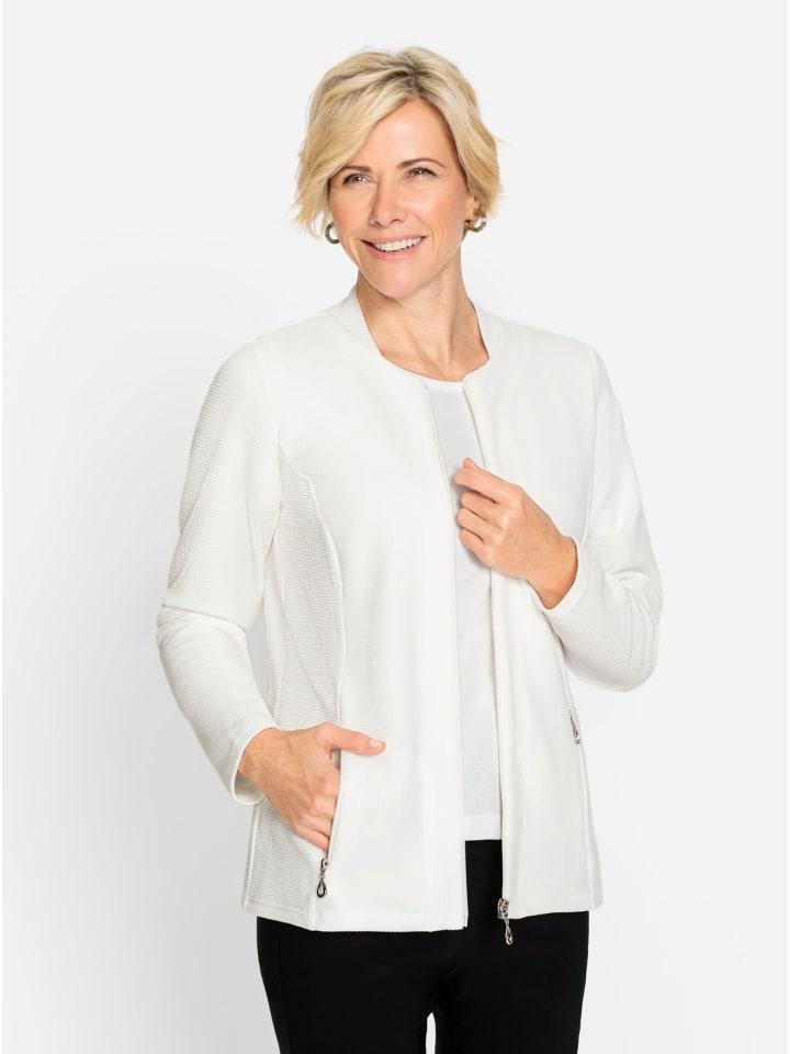 Из жаккарда, сохраняющего форму: куртка-рубашка, благодаря моделирующим швам «принцесса» создает отличный силуэт! Круглый вырез с небольшим воротником-стойкой, застежка-молния по всей длине, 2 потайных кармана на молнии.
