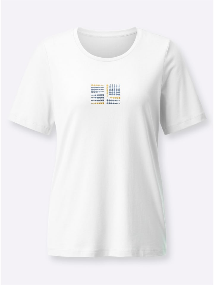 Универсальная базовая модель! Рубашка с блестками спереди. Круглый вырез горловины и короткие рукава. Поддерживает инициативу «Хлопок, сделанный в Африке».