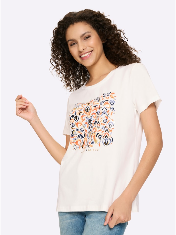 Рубашка с принтом экрю и голубого цвета Heine