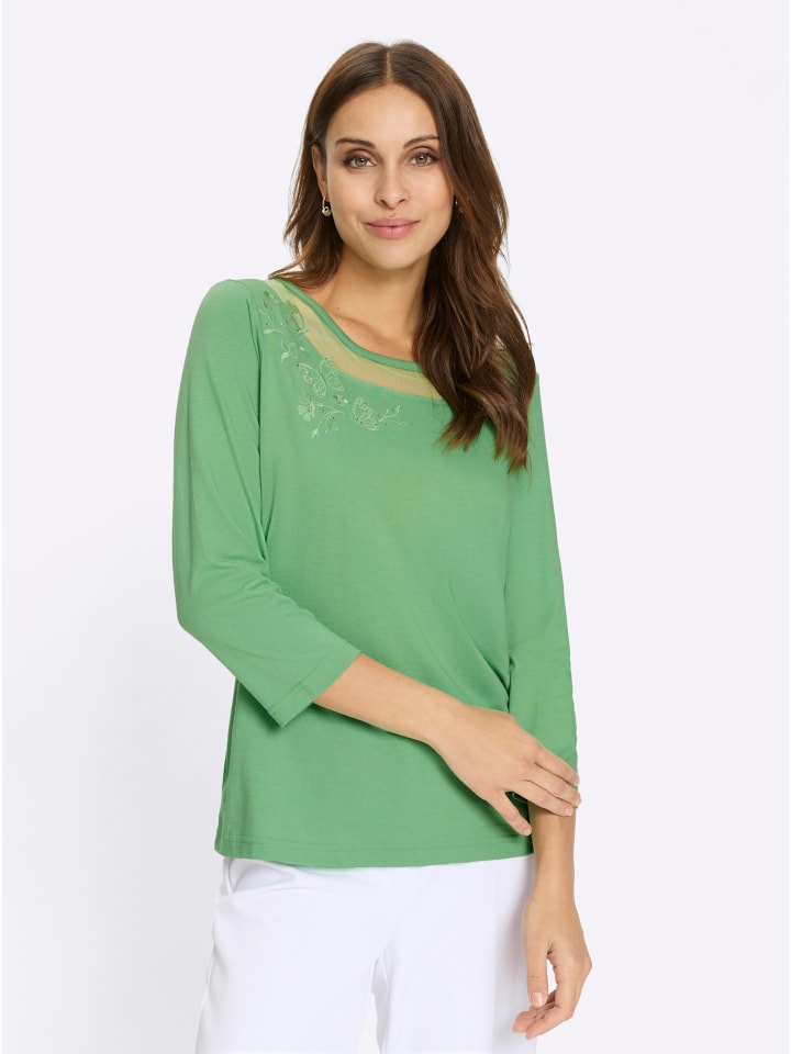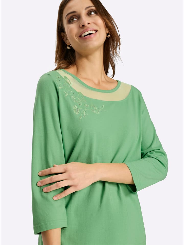Эта футболка с круглым вырезом, украшенная изящной вышивкой и сверкающими стразами, обязательно вызовет у вас порхание бабочек в животе. Она дополнена эффектной сетчатой вставкой на вырезе и рукавами три четверти. Сертифицировано OCS.