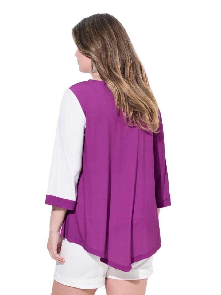 Футболка удобного кроя из мягкого трикотажа с заостренным нижним краем. Современный цветочный принт, состоящий из двух частей. Круглый вырез горловины, рукава 3/4 с манжетами из резинки.