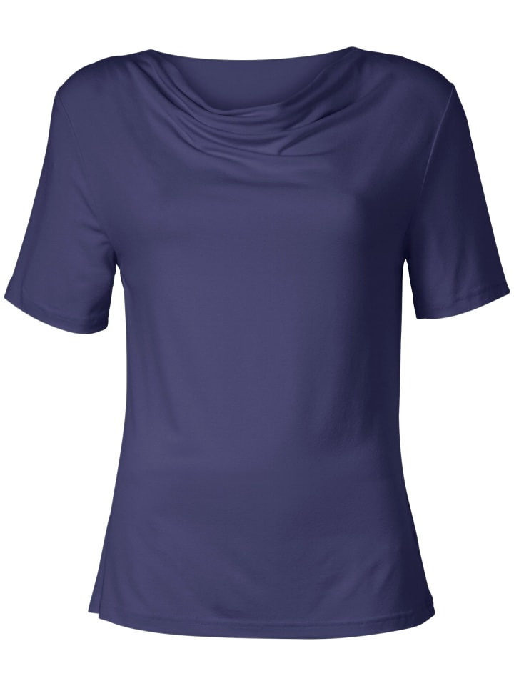 Эта женственная рубашка привлекает внимание своим плавным водопадным вырезом. Короткие втачные рукава обеспечивают отличную посадку. Изготовлена из очень комфортной смеси вискозы и эластичного хлопка.