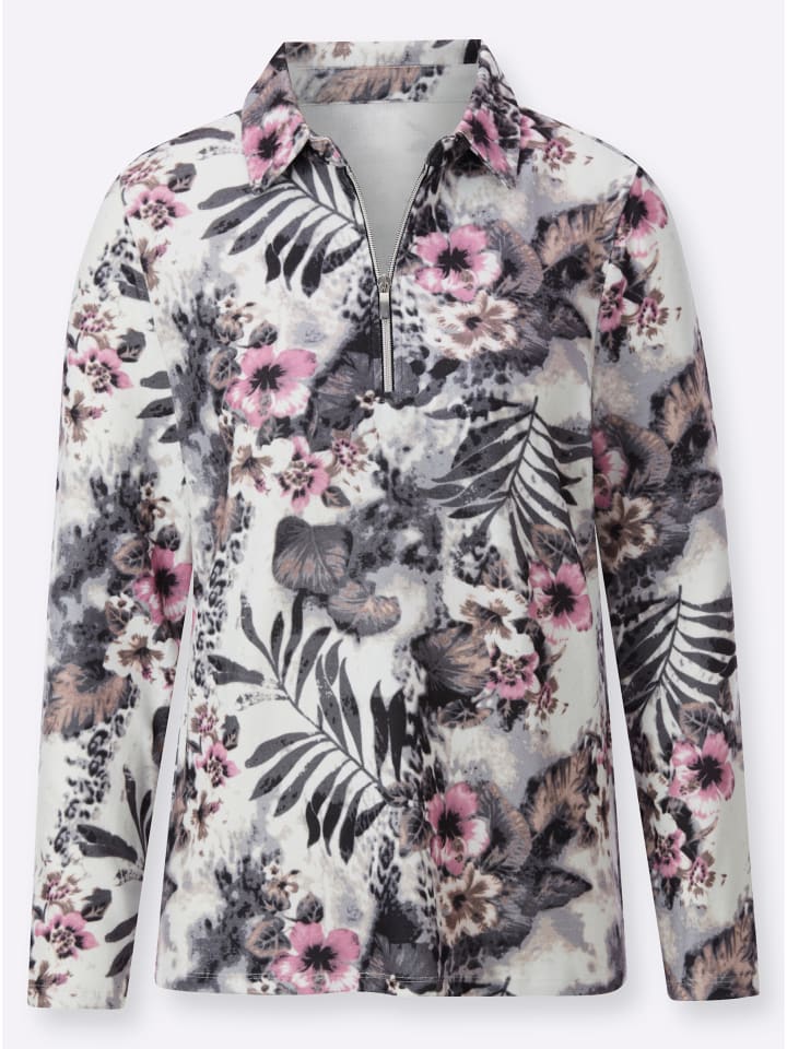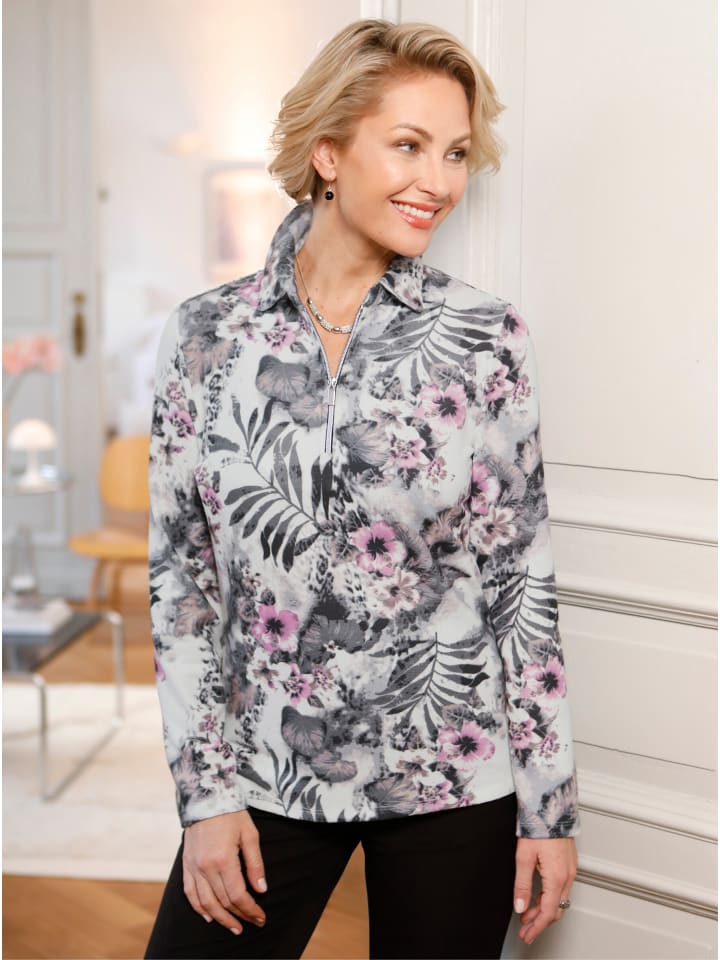 Просто идеально подходит для прохладных дней. Привлекательная, универсальная зимняя рубашка из теплой ткани, не требующей особого ухода. С привлекательным принтом по всей поверхности. Воротник-поло и практичная молния. Длинные рукава.