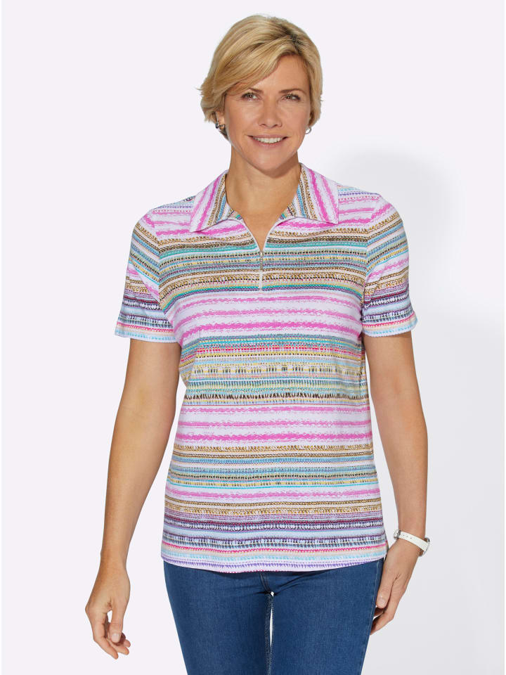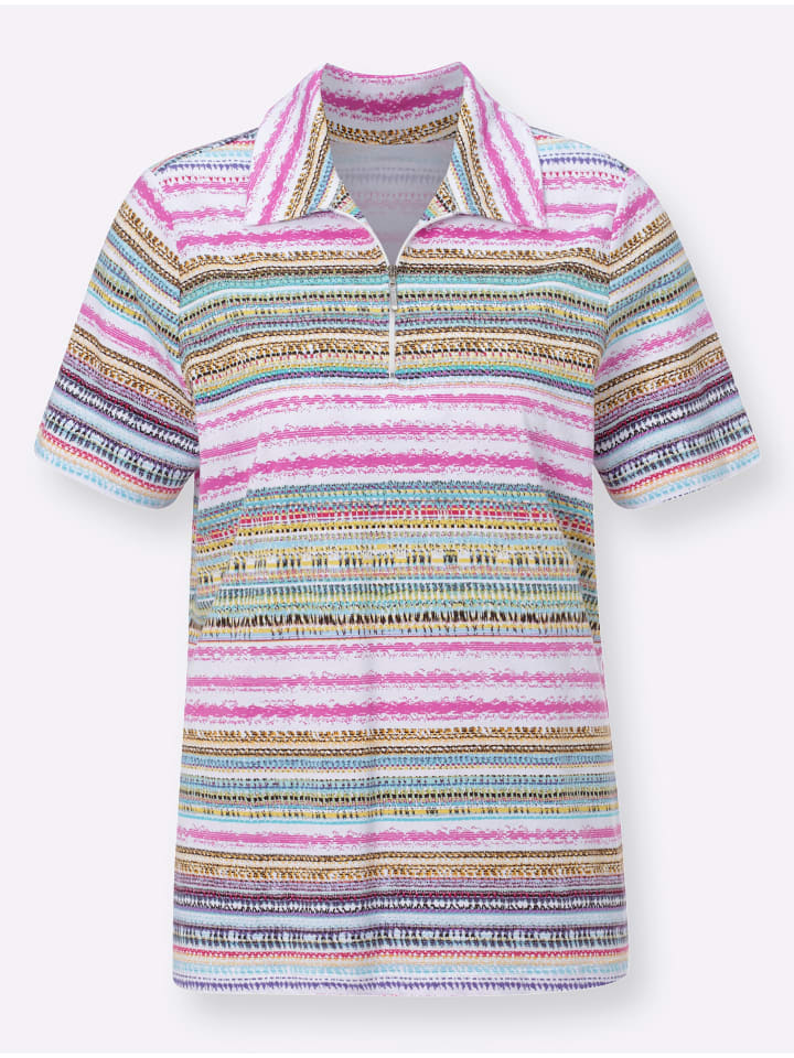 Эта рубашка невероятно мягкая на ощупь благодаря смеси хлопка и модала. Эффектный полосатый рисунок по всей поверхности придает ей великолепный вид. Воротник-поло на молнии.