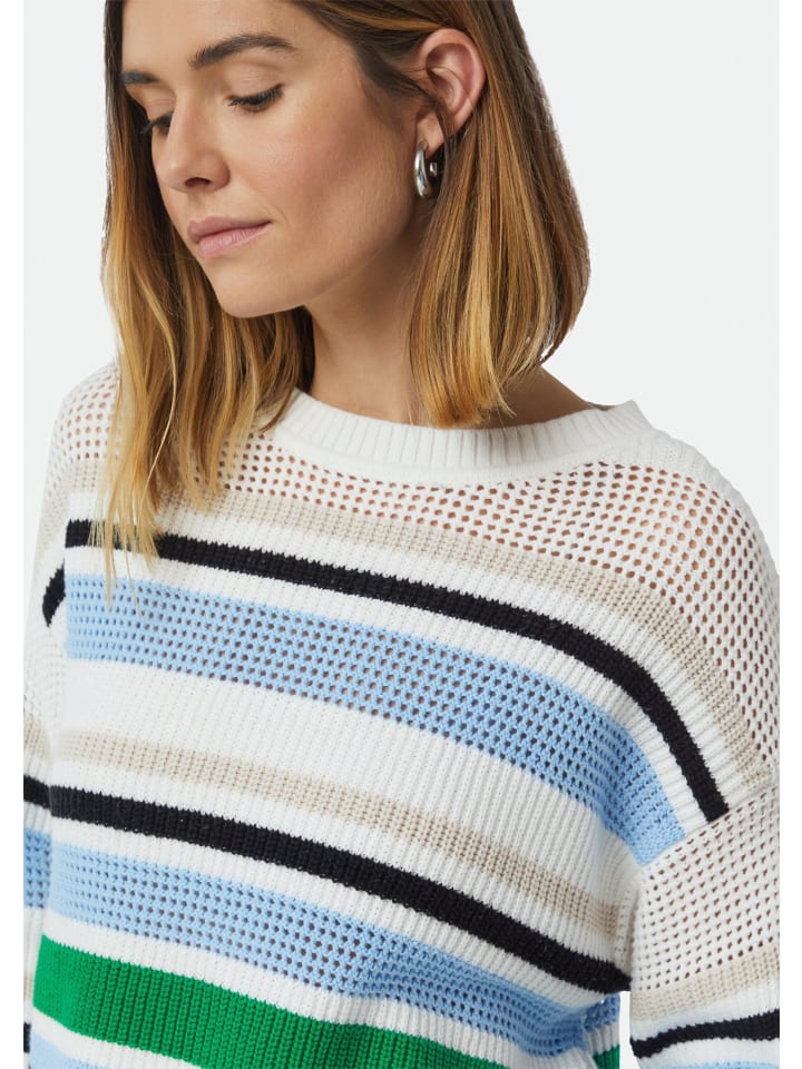 Полосатый комфорт: этот свитер из смесовой хлопковой ткани сочетает в себе стиль и комфорт. Свободный крой подчеркивает фигуру благодаря мягкой эластичной трикотажной фактуре. Спущенная линия плеч и широкие рукава с ребристыми манжетами придают изделию непринужденный вид. Круглый вырез горловины с ребристым узором завершает образ. Универсальный и незаменимый элемент повседневного образа.
