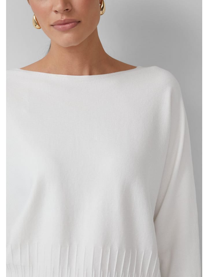 Вечная элегантность и современный шик: этот трикотажный свитер с вырезом-лодочкой и текстурированным подолом станет вашим универсальным спутником. Будь то повседневный, праздничный или деловой образ - вы будете излучать уверенность. Классический крой и тонкая вязка подчеркнут вашу фигуру и индивидуальный стиль.