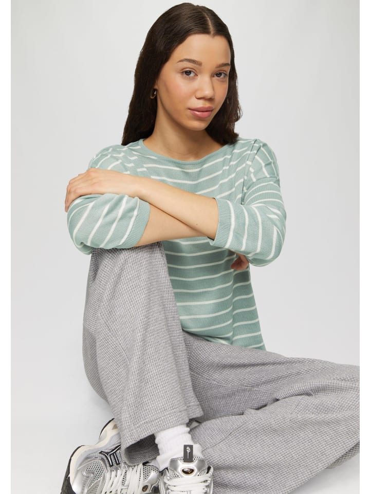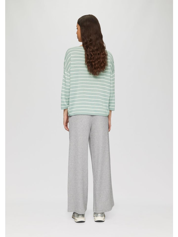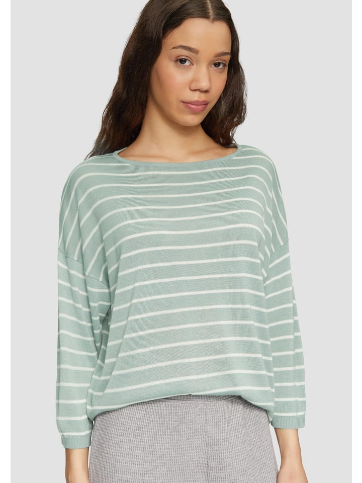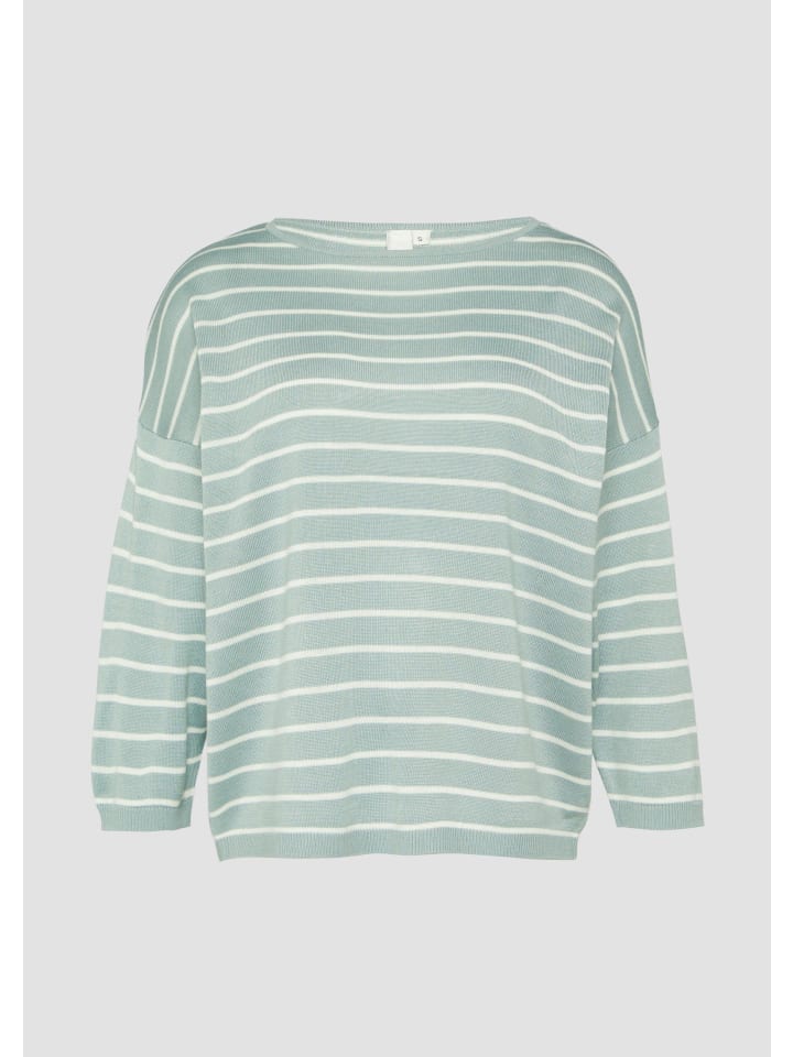 Полосатый трикотажный свитер для хорошего настроения! Этот легкий свитер из смесовой вискозы с рукавами 3/4 и вырезом «лодочка» идеально подходит для расслабленного образа жизни. Будь то встреча за чашкой кофе или прогулка - вы всегда будете выглядеть стильно и непринужденно. Свободный крой для максимального комфорта!