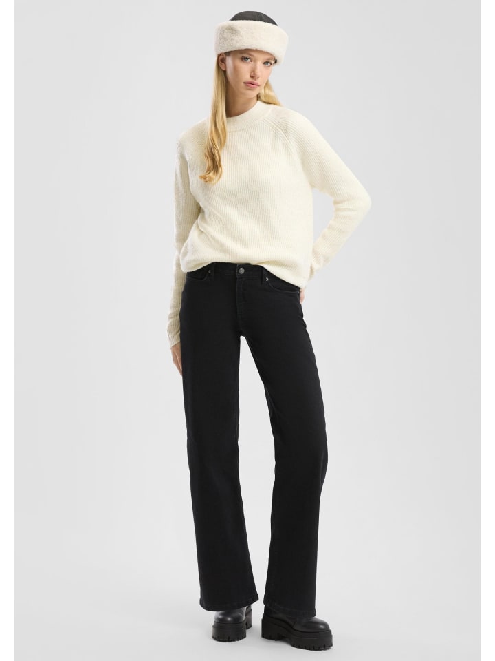 Этот меланжевый свитер прямого кроя с рукавами реглан и круглым вырезом впечатляет своей мягкой ребристой текстурой. Неизменная базовая модель для вашего повседневного стиля.