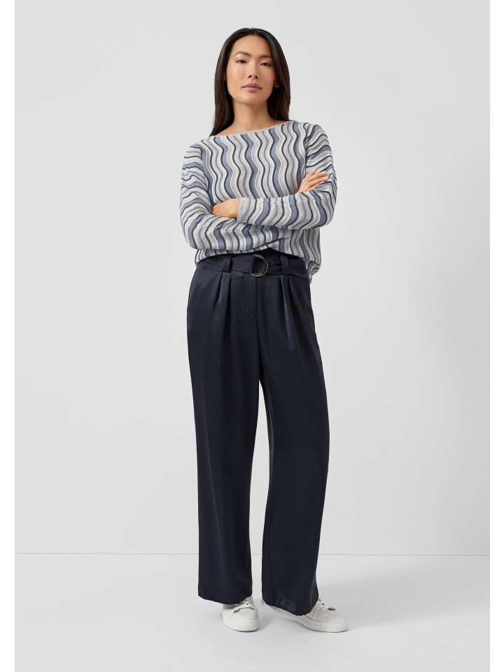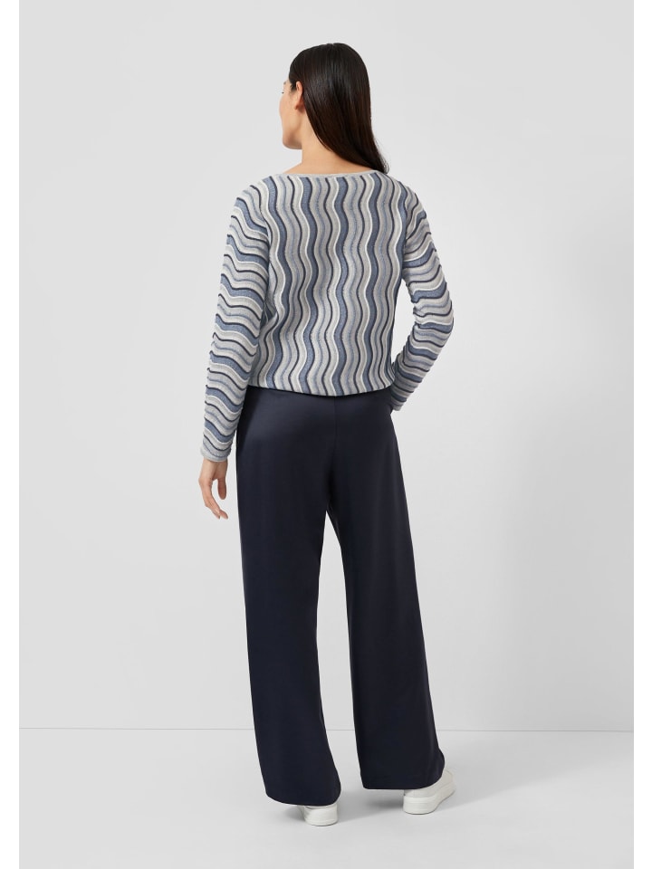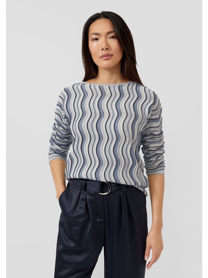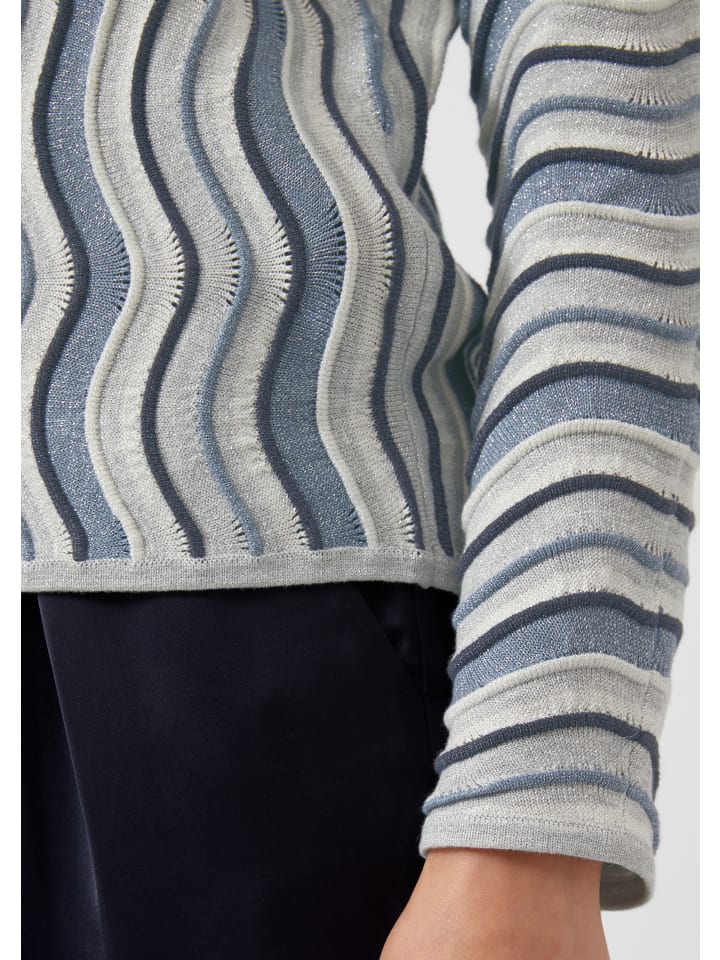 Легкий свитер тонкой вязки с волнистым узором и легкой блестящей пряжей - эффектный аксессуар для тех, кто сочетает элегантность с непринужденным стилем. Вырез лодочкой и рукава «летучая мышь» создают непринужденный силуэт, а разноцветный дизайн добавляет глубины вашему образу. Идеально подходит для повседневных случаев, праздников или деловых встреч: этот свитер подчеркнет вашу универсальность и стильную уверенность.