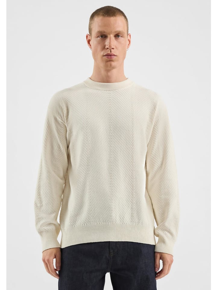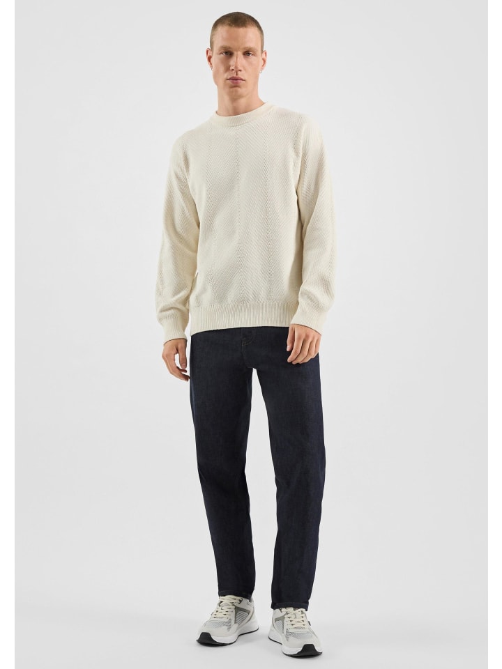 Этот повседневный трикотажный свитер с интересным фактурным узором станет вашим идеальным спутником для расслабленных дней. Прямой крой и классический круглый вырез горловины обеспечат максимальный комфорт - идеальный вариант для городского образа жизни.