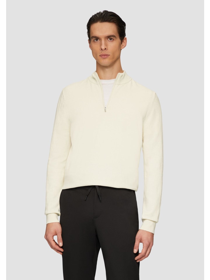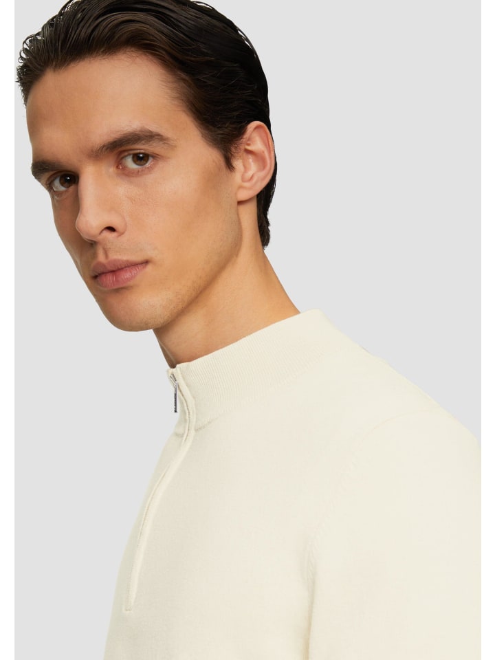Роскошь на каждый день: этот трикотажный свитер с водолазкой сочетает в себе комфорт и стиль. Смесь 90% хлопка и 10% шелка невероятно мягкая и согревает. Молния на воротнике и ребристая отделка придают свитеру классический крой современный вид. Идеально подходит для прохладных осенних дней или уютных зимних вечеров - сочетайте его с джинсами или брюками чинос для создания непринужденного элегантного образа.