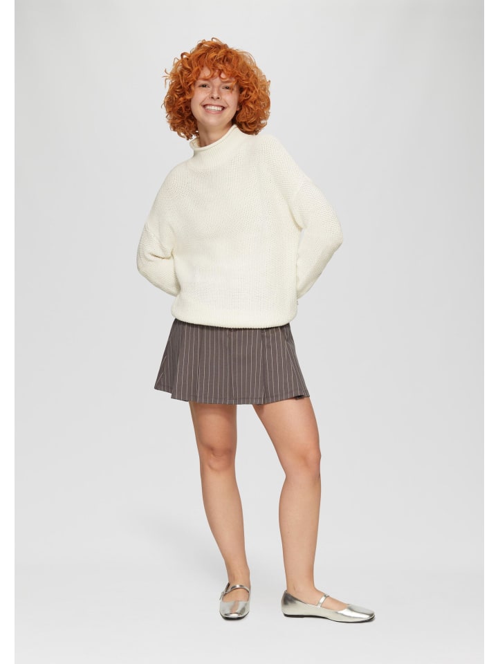 Повседневный трикотажный свитер для создания приятного настроения! Этот свободный свитер из хлопковой смеси с воротником-стойкой и спущенными плечами станет вашим идеальным спутником для расслабленных дней. Мягкий, фактурный и теплый - создайте непринужденный образ.