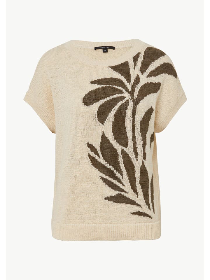 Цветочная утонченность в сочетании с мастерством трикотажа: этот свитер с короткими рукавами свободного кроя очаровывает своим изысканным интарсийным узором. Изготовленный из мягкой эластичной хлопковой смеси, он выгодно подчеркивает фигуру. Ребристый круглый вырез горловины и трикотажный воротник добавляют стильные акценты. Сочетайте его с джинсами для создания повседневного образа или с юбкой для более элегантного образа.