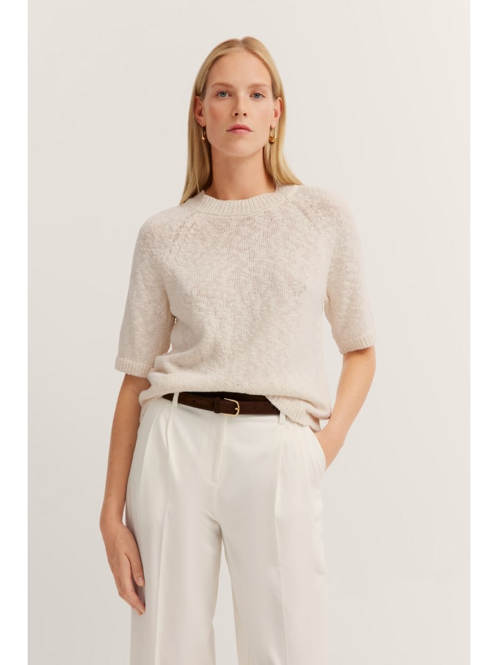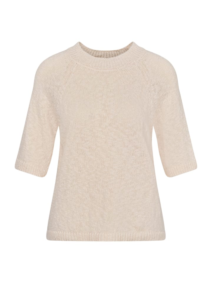 Летний женский свитер Bugatti из легкой смеси хлопка и льна с дышащими рукавами и удобным круглым вырезом - идеальный вариант для теплых дней. Наслаждайтесь приятным комфортом и идеальной посадкой благодаря ребристым манжетам. Дополните свой гардероб этим стильным трикотажным свитером!