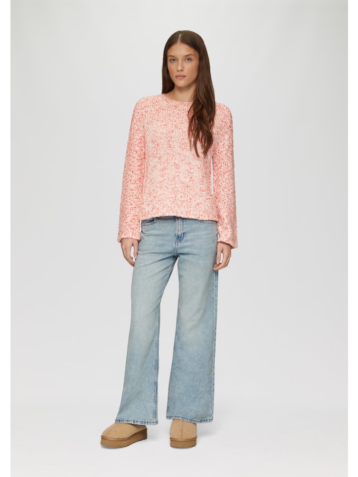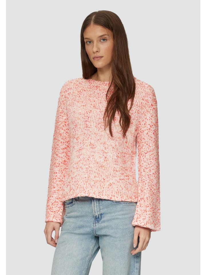 Уютный вязаный свитер с широкими рукавами для комфорта. Мягкий меланжевый крой с практичными боковыми разрезами и спущенным плечом обеспечит стильное тепло на весь день - идеально для непринужденных повседневных образов.