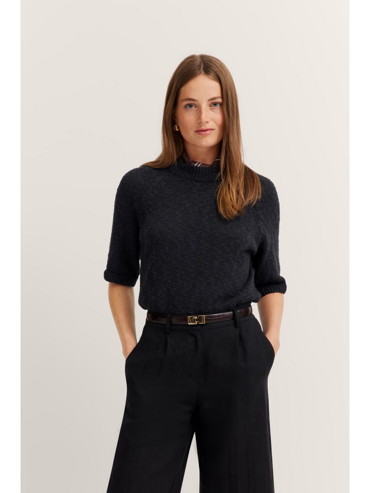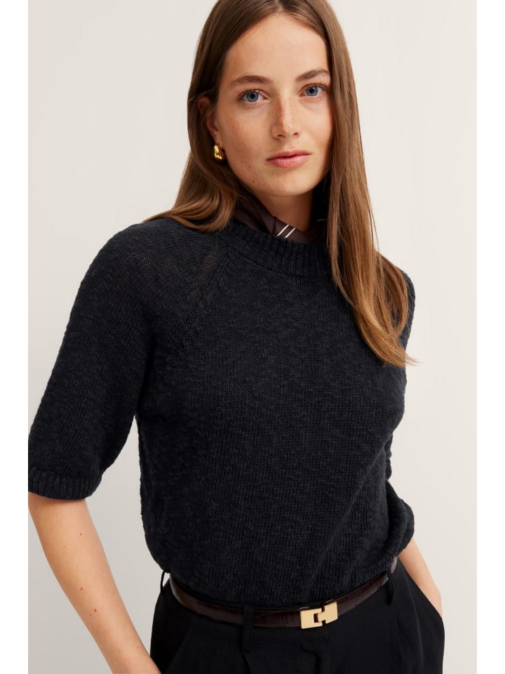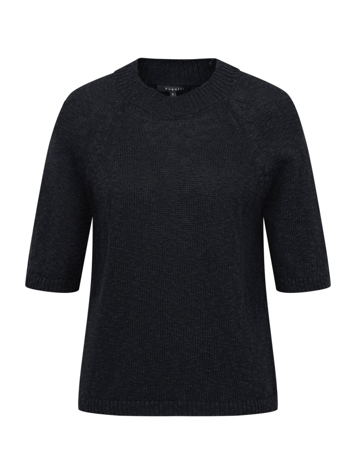 Летний женский свитер Bugatti из легкой смеси хлопка и льна с дышащими рукавами и удобным круглым вырезом - идеальный вариант для теплых дней. Наслаждайтесь приятным комфортом и идеальной посадкой благодаря ребристым манжетам. Дополните свой гардероб этим стильным трикотажным свитером!