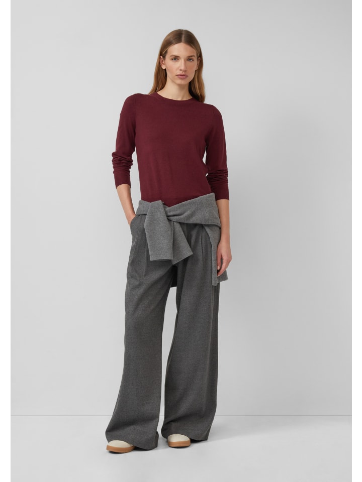 Этот уютный трикотажный свитер с круглым вырезом сочетает в себе деловую элегантность и непринужденный повседневный стиль. Женственный дизайн с тонким вязаным узором и эластичной вискозной смесью обеспечивает уютное тепло и комфорт - идеально подходит для повседневной жизни.
