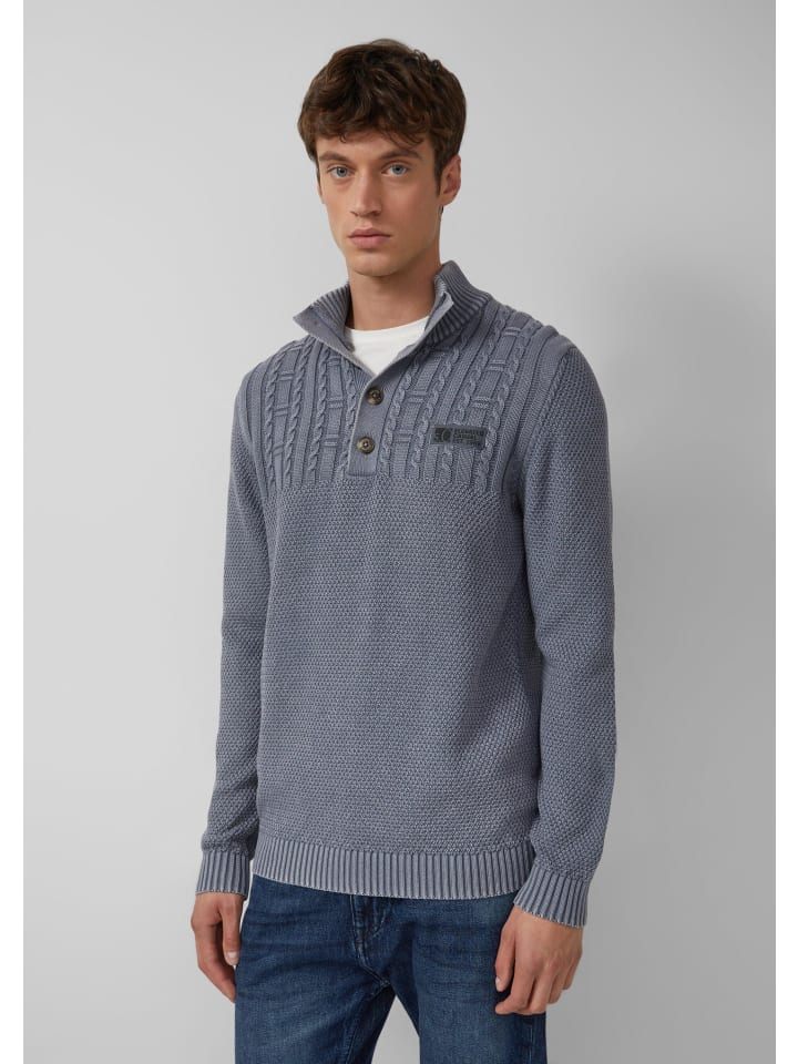Этот повседневный трикотажный свитер с высоким воротником впечатляет ярким сочетанием кос и трикотажных узоров. Окрашенный в готовом виде хлопок придаст вашему повседневному образу особую аутентичность.
