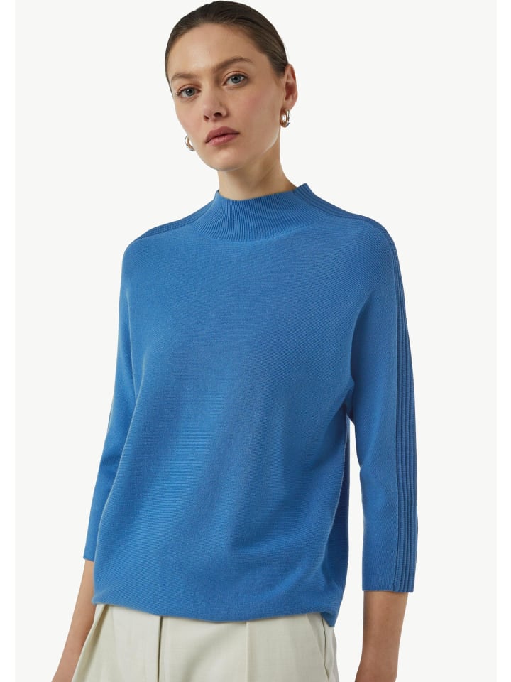 Свитер тонкой вязки с воротником-стойкой: ваш новый фаворит для универсальных образов. Классический крой подходит к любой фигуре, а рукава 3/4 добавляют женственности. Ребристые детали создают тонкие акценты и текстурированный вид. Сочетайте его с блейзером и джинсами для создания делового повседневного образа или носите с широкими брюками-кюлотами для непринужденного образа на выходные.