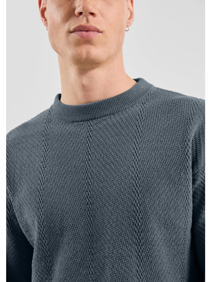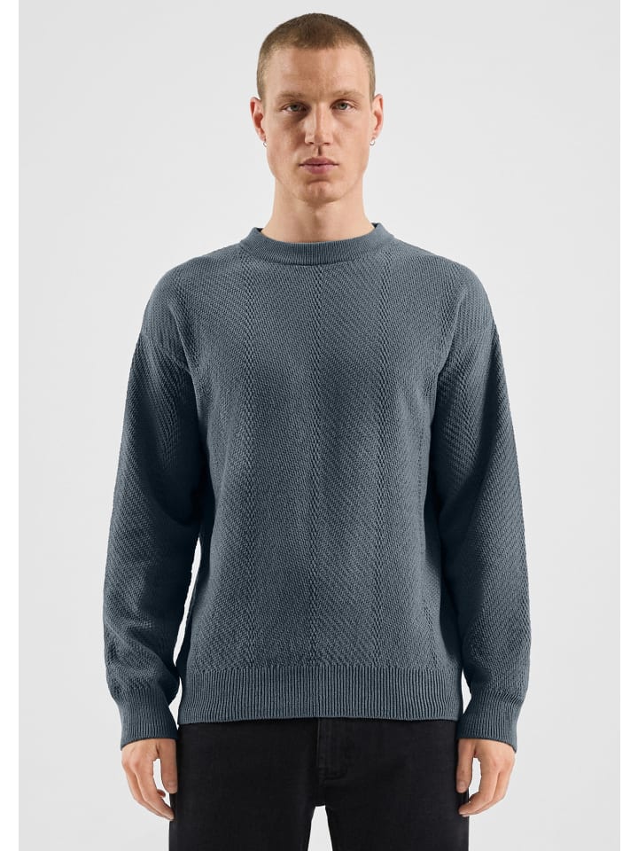 Этот повседневный трикотажный свитер с интересным фактурным узором станет вашим идеальным спутником для расслабленных дней. Прямой крой и классический круглый вырез горловины обеспечат максимальный комфорт - идеальный вариант для городского образа жизни.