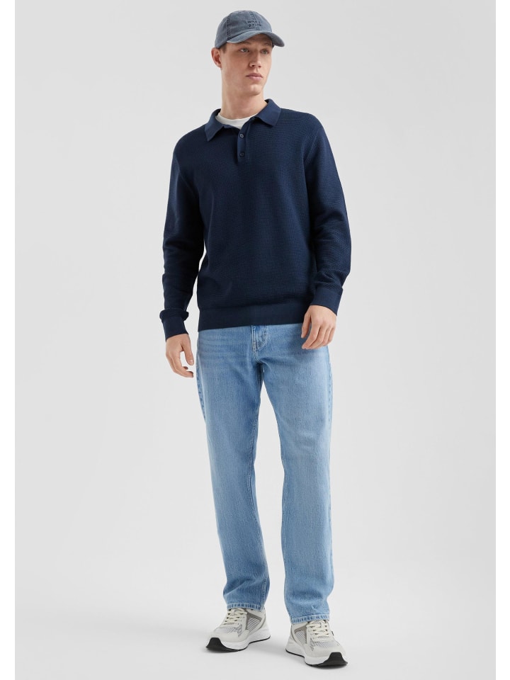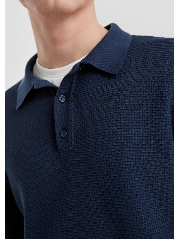 Стильный трикотажный свитер с модной текстурированной вязкой и сетчатым эффектом. Классический крой и классический воротник-поло идеально дополнят ваш современный повседневный образ. Ребристая отделка добавит стильного штриха.