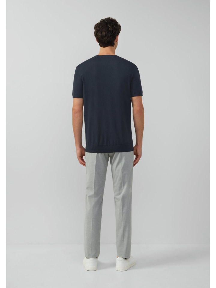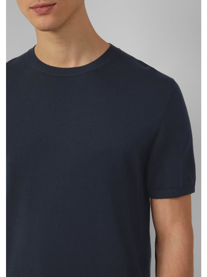 Тонкая вязка и комфорт: эта футболка из смеси хлопка и модала - ваш новый универсальный вариант. Благодаря лаконичному круглому вырезу и стандартному крою она стильно дополнит ваш образ как в офисе, так и на ужине. Версия с короткими рукавами и ребристым подолом подчеркнет ваш уверенный образ - независимо от того, носите ли вы ее отдельно или в составе многослойной одежды.