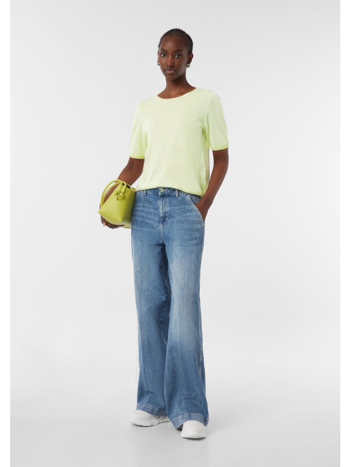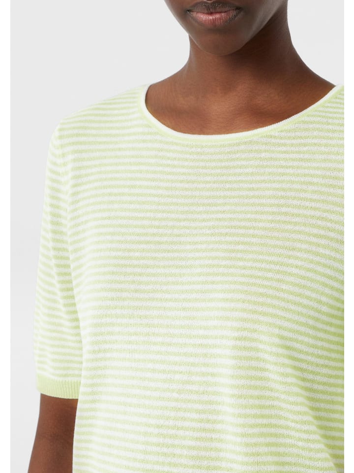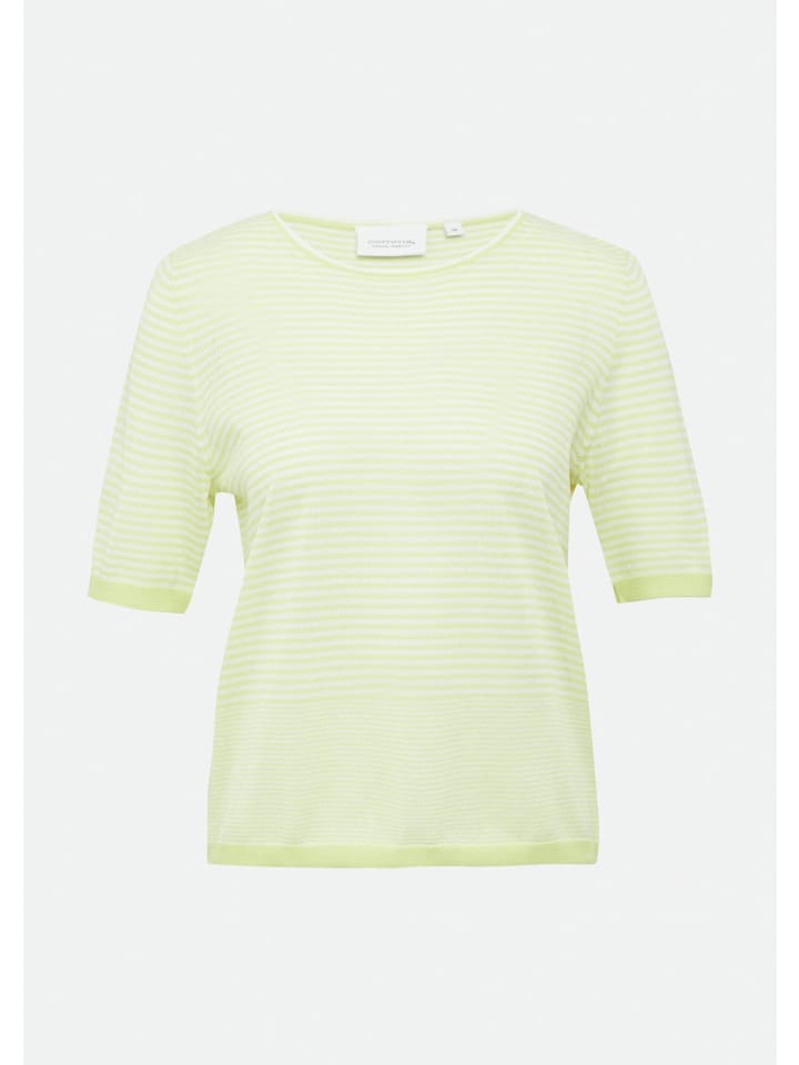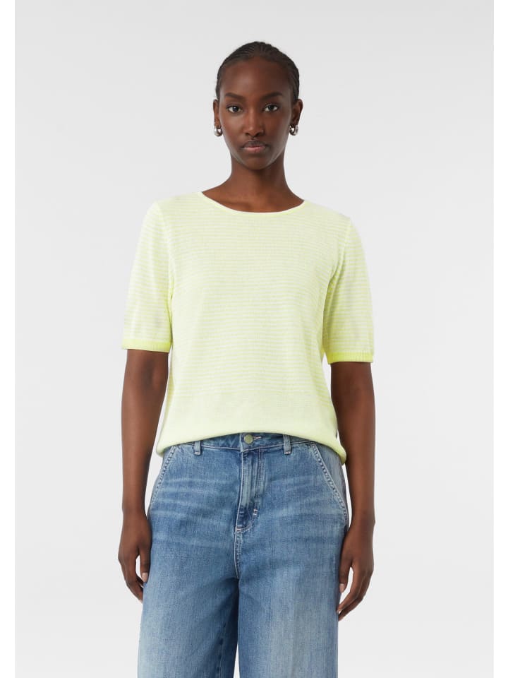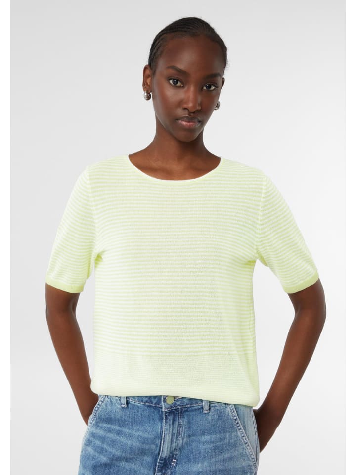 Воздушная роскошь для вашего лета: этот полупрозрачный свитер тонкой вязки с короткими рукавами и ребристыми манжетами обязательно станет вашим новым фаворитом. Изготовленный из легкой вискозной смеси, он выгодно подчеркнет вашу фигуру. Круглый вырез горловины и полосатый узор придают ему непреходящее очарование. Идеально подходит для повседневной носки или в качестве стильного многослойного элемента.