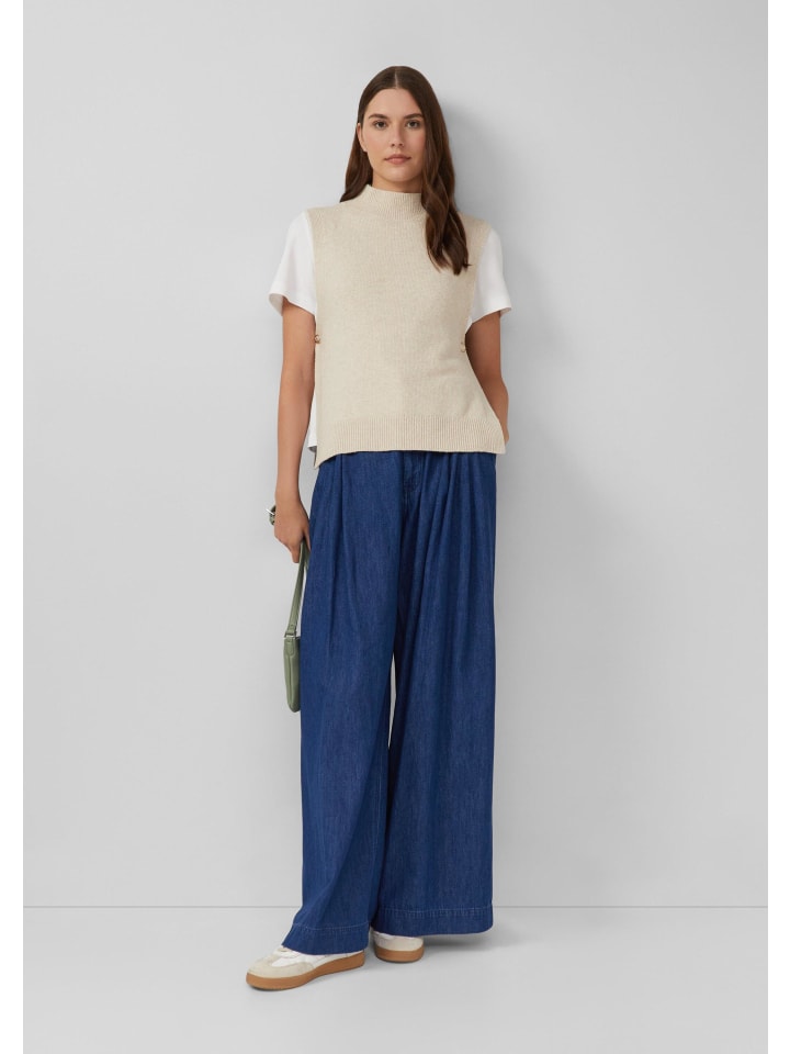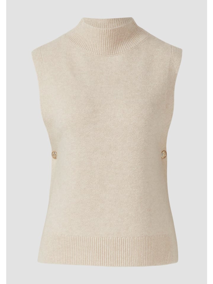 Уютный повседневный жилет: этот трикотажный жилет без рукавов с воротником-стойкой и застежкой на пуговицы согреет вас в прохладные дни. Мягкий, эластичный материал приятен на ощупь и дарит ощущение комфорта - будь то в офисе или дома.