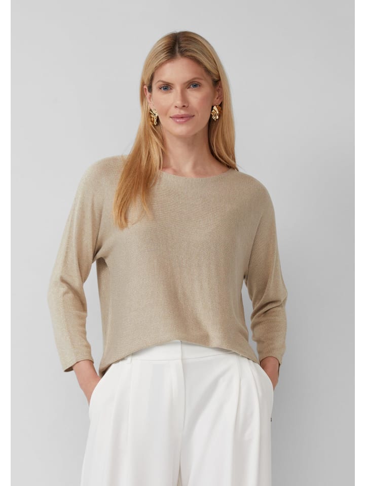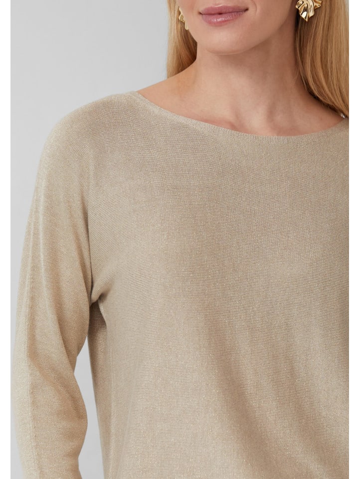 Блеск и гламур на каждый день: этот вязаный свитер с блестящей пряжей очарует вас. Рукава «летучая мышь» длиной 3/4 и вырез «лодочка» придадут вам женственный силуэт. От деловых встреч до праздничных ужинов - вы будете блистать в любой ситуации. Универсальная вещь, которая подчеркнет ваш индивидуальный стиль и олицетворяет вневременную элегантность.