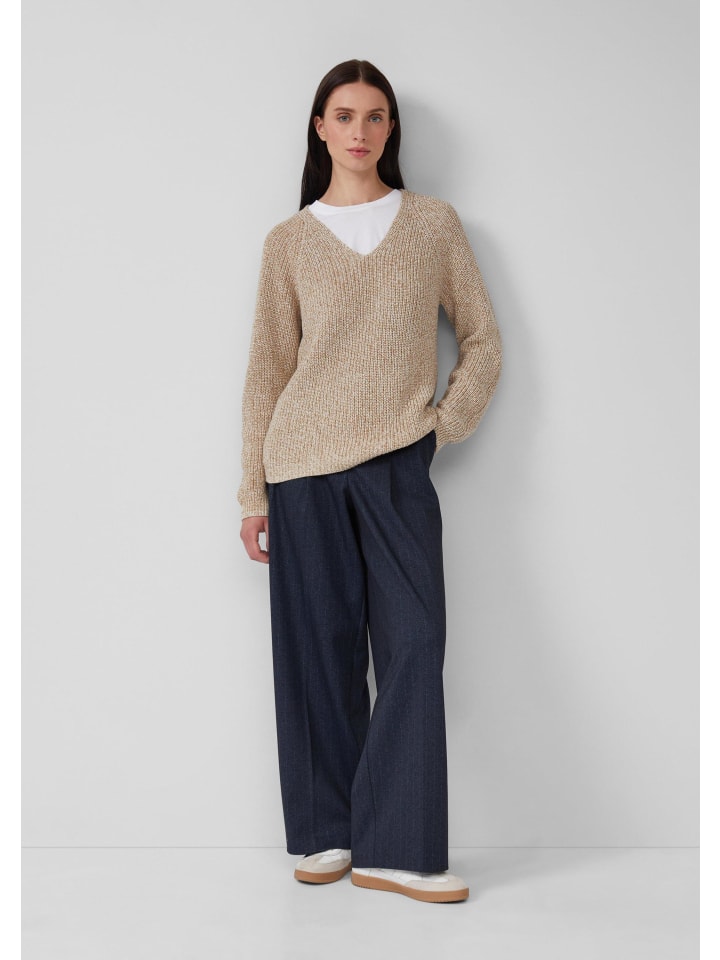 Уютный вязаный свитер с V-образным вырезом и рукавами реглан - ваш новый фаворит для спокойного отдыха. Мягкий, эластичный и теплый, он обволакивает вас своим удобным прямым кроем. Универсальная вещь, идеально сочетающая комфорт и стиль.