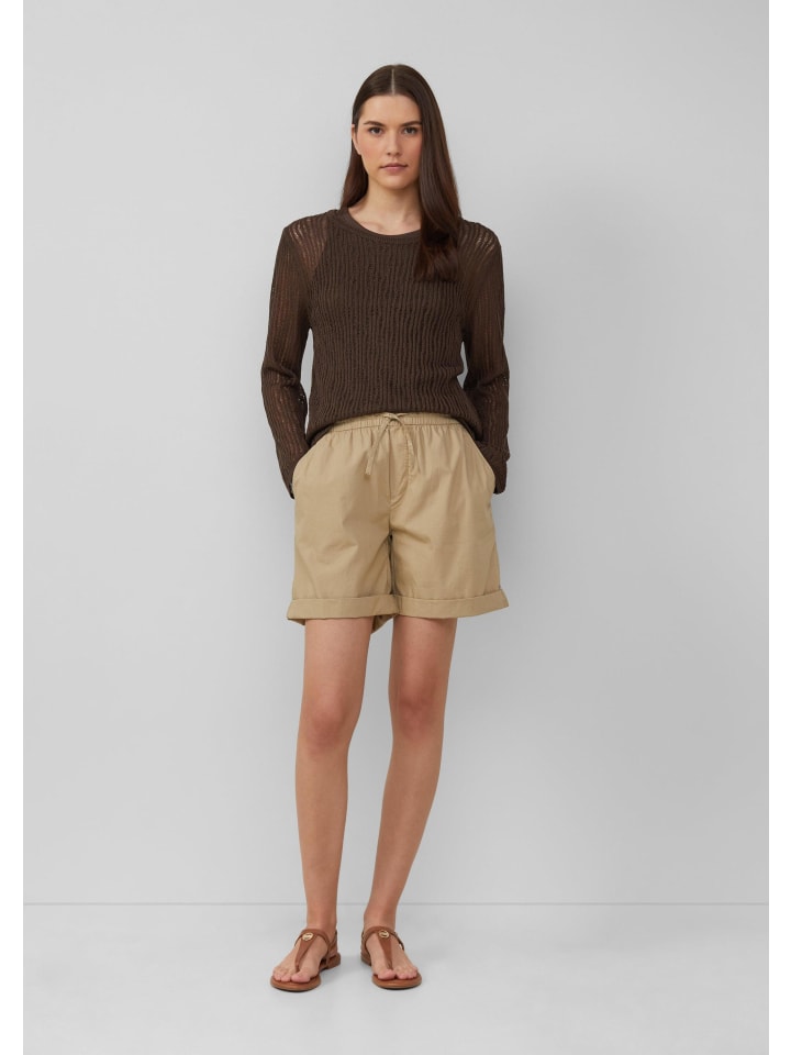 Ищете легкий и воздушный летний образ? Этот трикотажный свитер из смесовой льняной пряжи обязательно станет вашим новым фаворитом. Благодаря нежному ажурному узору и свободному прямому крою он идеально дополнит ваш повседневный образ. На пикнике в парке или на прогулке по городу вы всегда будете чувствовать себя комфортно и выглядеть великолепно. Просто наденьте его, и все готово!