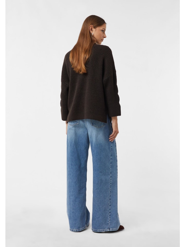 Элегантность вне времени: этот свободный трикотажный свитер идеально сочетает в себе комфорт и стиль. Уютный шерстяной трикотаж с эластичными свойствами и характерным воротником-стойкой подчеркнет вашу фигуру. Рукава три четверти со спущенным плечом и ребристыми манжетами добавят модного штриха, а разрез на рукаве и ребристый подол добавят изысканности. Универсальный и незаменимый элемент для создания изысканных образов.