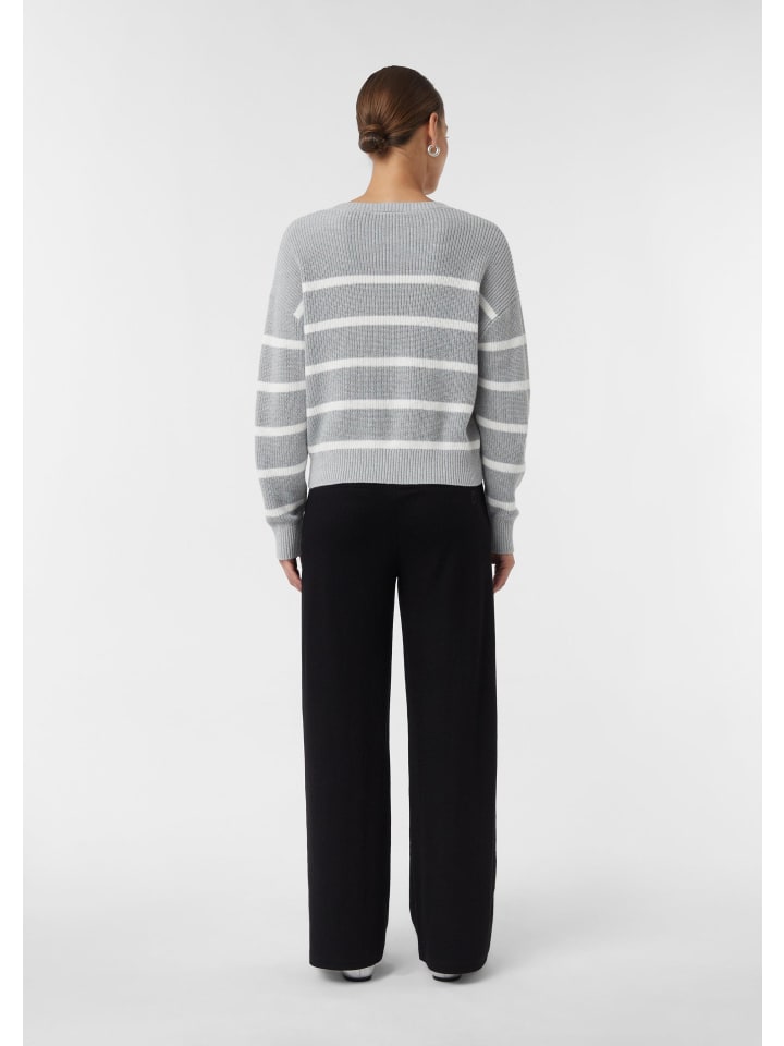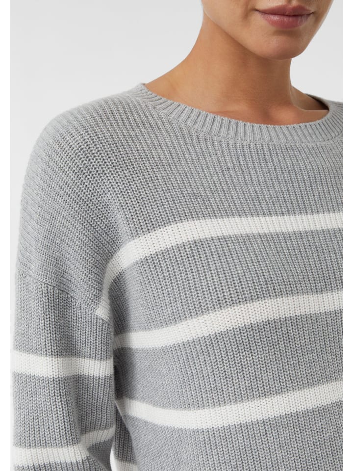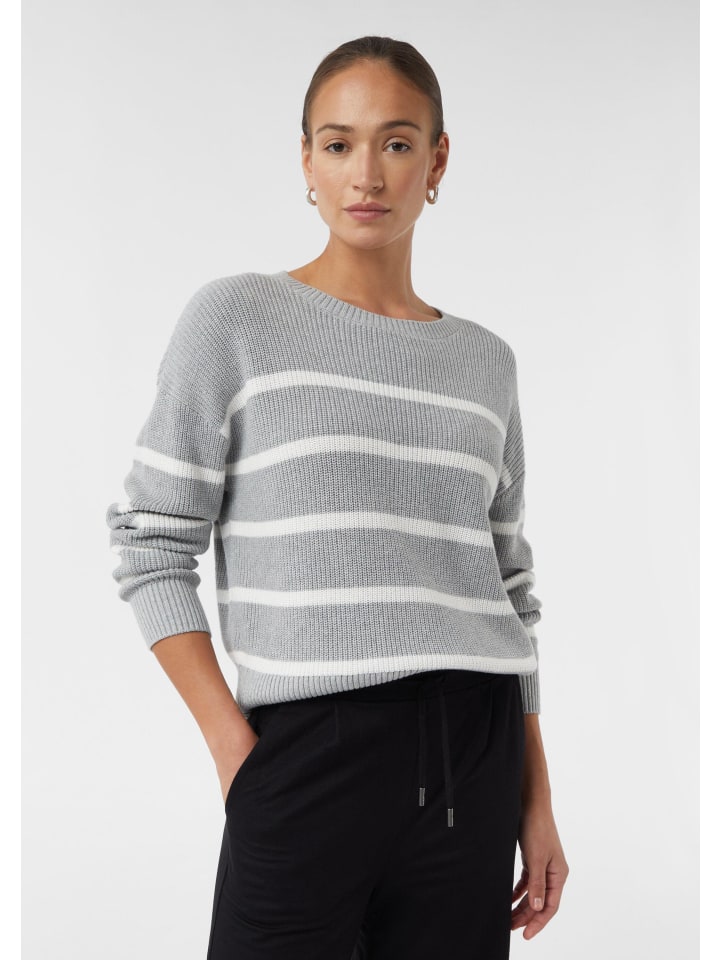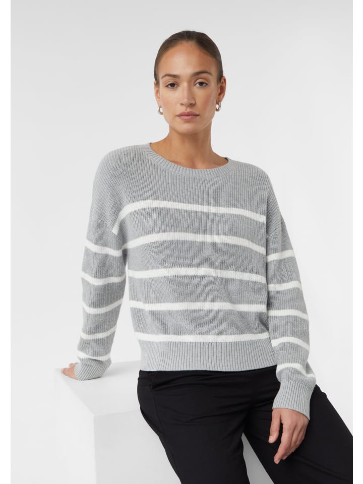 Повседневный комфорт и вневременной дизайн: этот полосатый трикотажный свитер свободного кроя впечатляет своей мягкостью и эластичностью. Классический круглый вырез горловины с ребристой отделкой и ребристы на манжетах рукавов добавляют стильные акценты. Гармоничный полосатый рисунок делает свитер универсальным дополнением к вашему гардеробу. Незаменимая вещь для создания непринужденных повседневных образов.